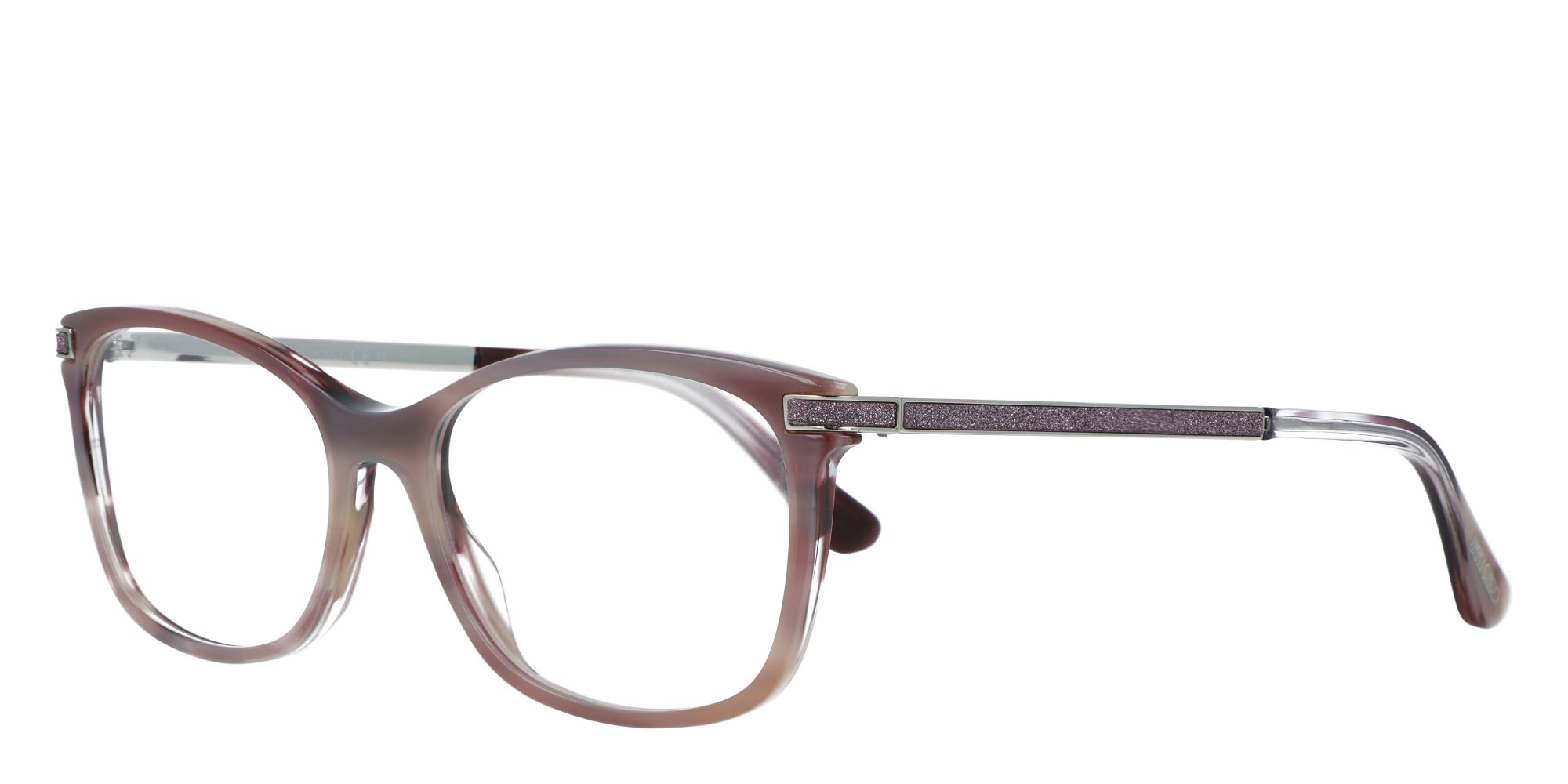 Jimmy Choo presents the new Crystal Stripes eyewear collection the perfect match for the brand's must have sparkling bags and shoes. The optical frames are enriched with eye catching glittery fabric in shaded hues, applied by hand on each frame for a truly glamorous look and feel. Crafted to an easy to wear square shape, the JC269 glasses feature an acetate front and gold tone metal temples. The brown powder crystal fabric glitter is hand applied for an impeccable finish.