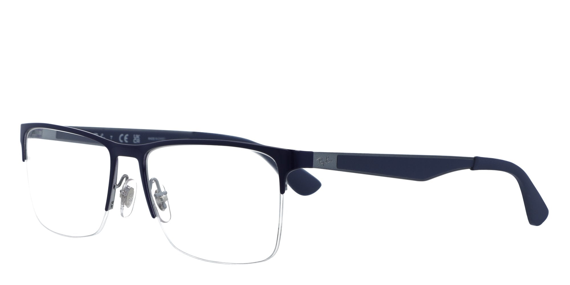 Add elegance to your look with these Ray-Ban RX6335 eyeglasses. The semi rimless glasses are constructed of metal, for frames that are lightweight and sturdy. These rectangular Ray-Ban eyeglasses flatter square, round, oval, and heart shaped faces. Rubber coated skull temples curve to the head to provide a secure fit and flexibility, while the adjustable nose pads offer a custom fit. Enjoy a look that combines style and comfort with plenty of attitude.