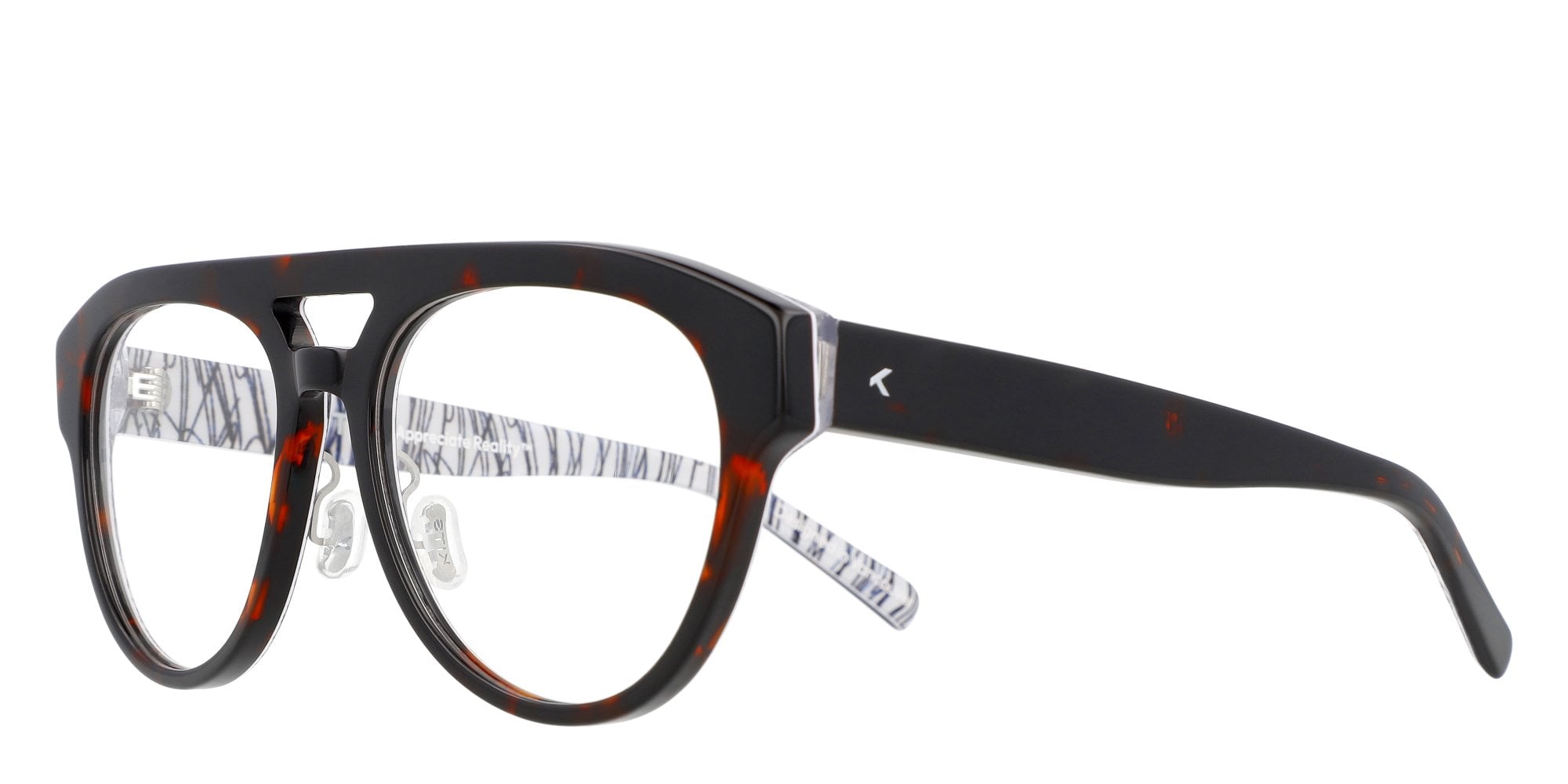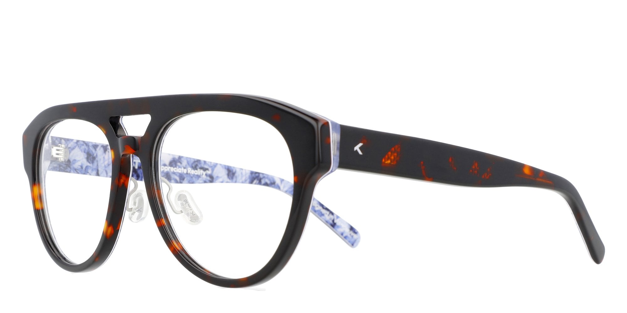 Multi-colour layered aviator acetate frame with nose pads.